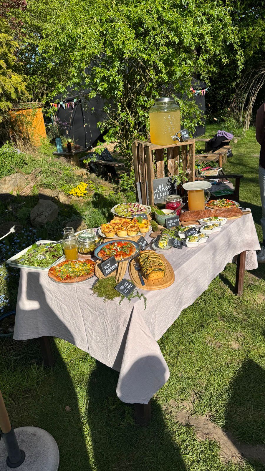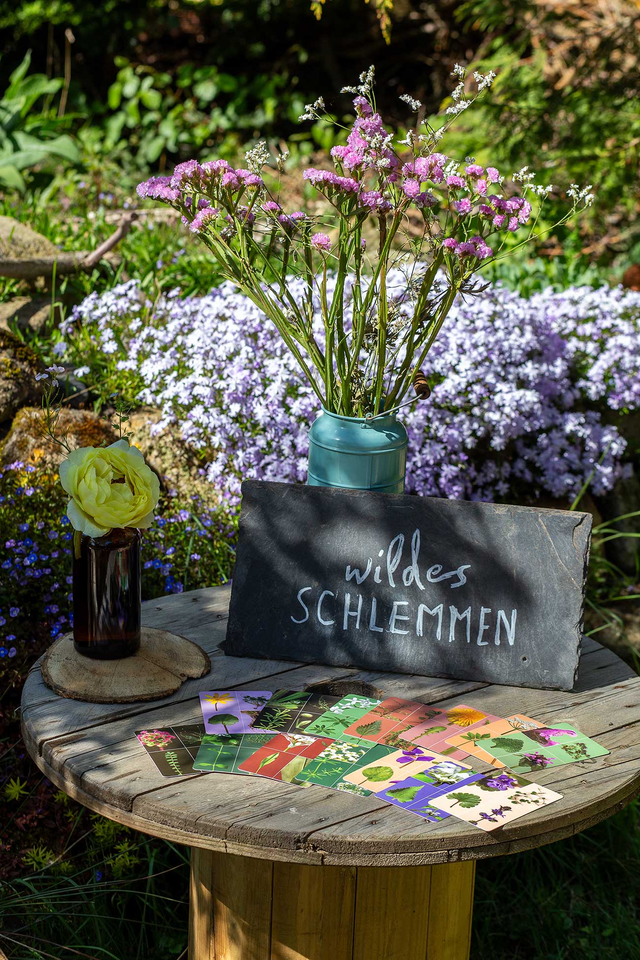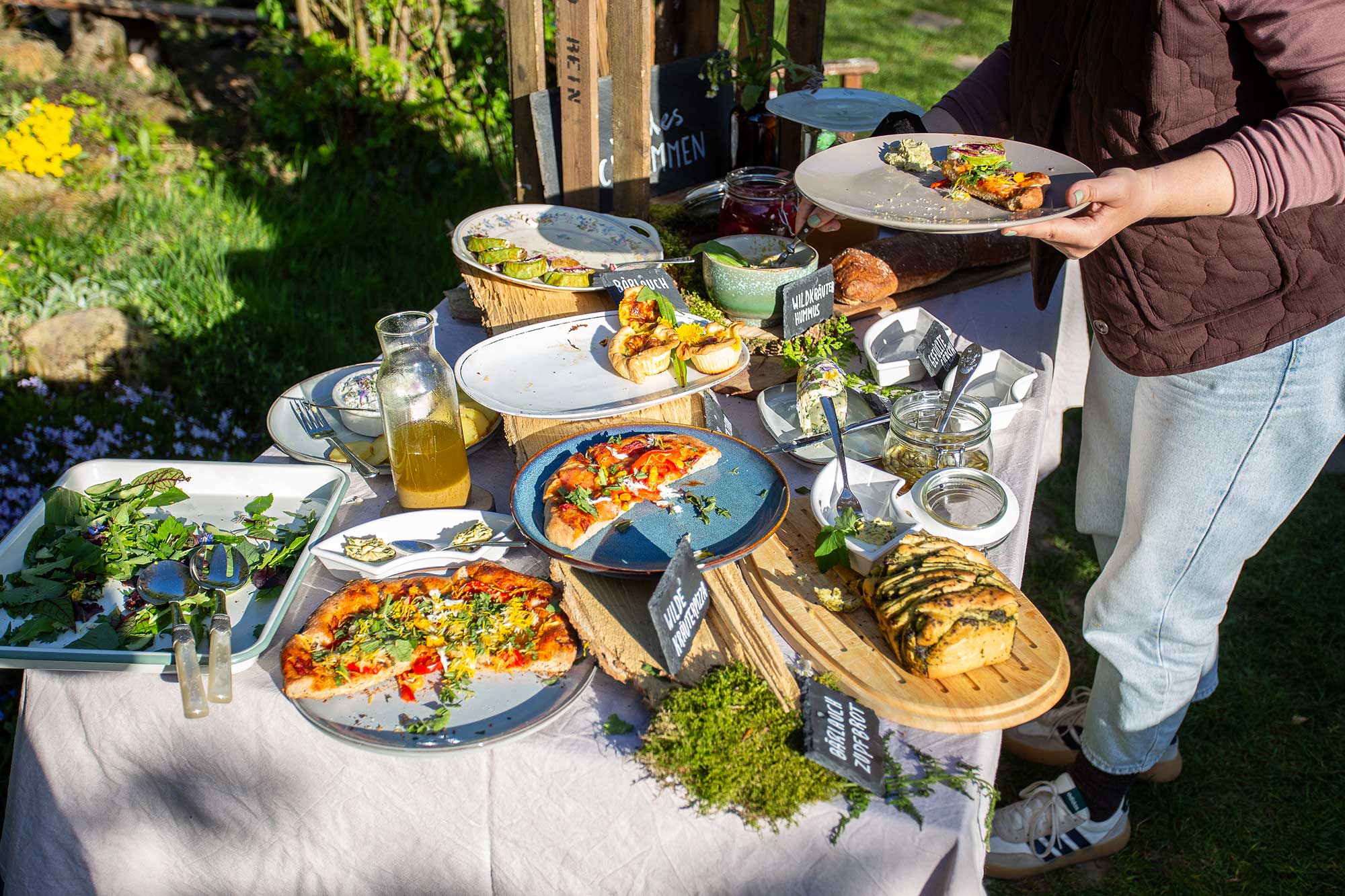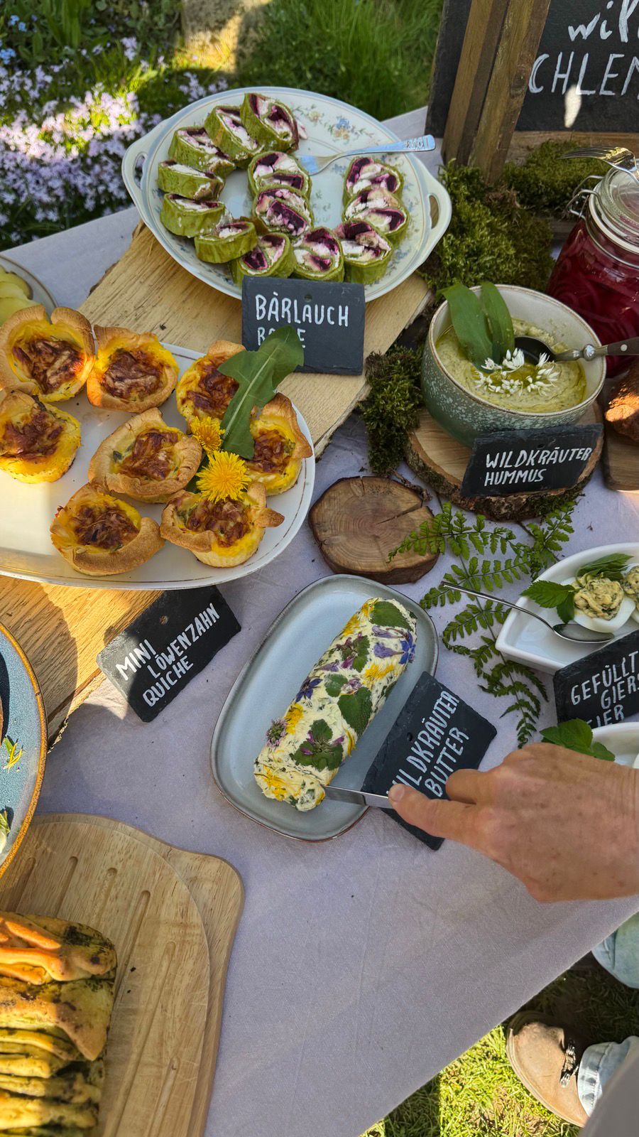 Das Wilde Schlemmen wurde gemeinsam von Jasmin und Jenny ins Leben gerufen, um ihrer Leidenschaft für Wildkräuter und allem, was in der Natur selbst gesammelt werden kann, sowie dessen Verarbeitung Rechnung zu tragen. Geplant sind mehrere Wilde Schlemmen-Termine im Jahr mit passenden saisonalen Gerichten. Ein Gericht wird dabei mit zuvor gemeinsam gesammelten Materialien vor Ort zubereitet, die anderen Gerichte werden zum einfachen Genießen von uns frisch vorbereitet und als Buffet präsentiert. Ihr bekommt mindestens ein 3‑Gänge-Menü (Vorspeise, Buffet als Hauptgang, Nachspeise) inklusive passende ausgewählte Getränke.