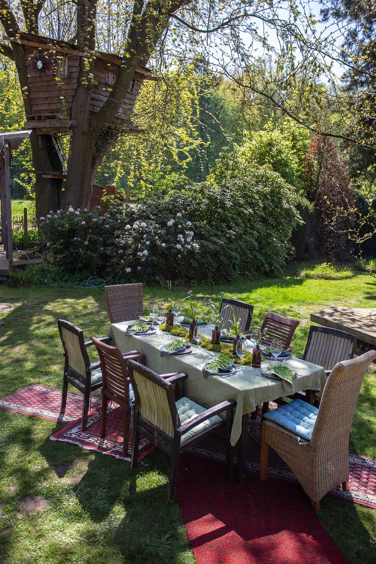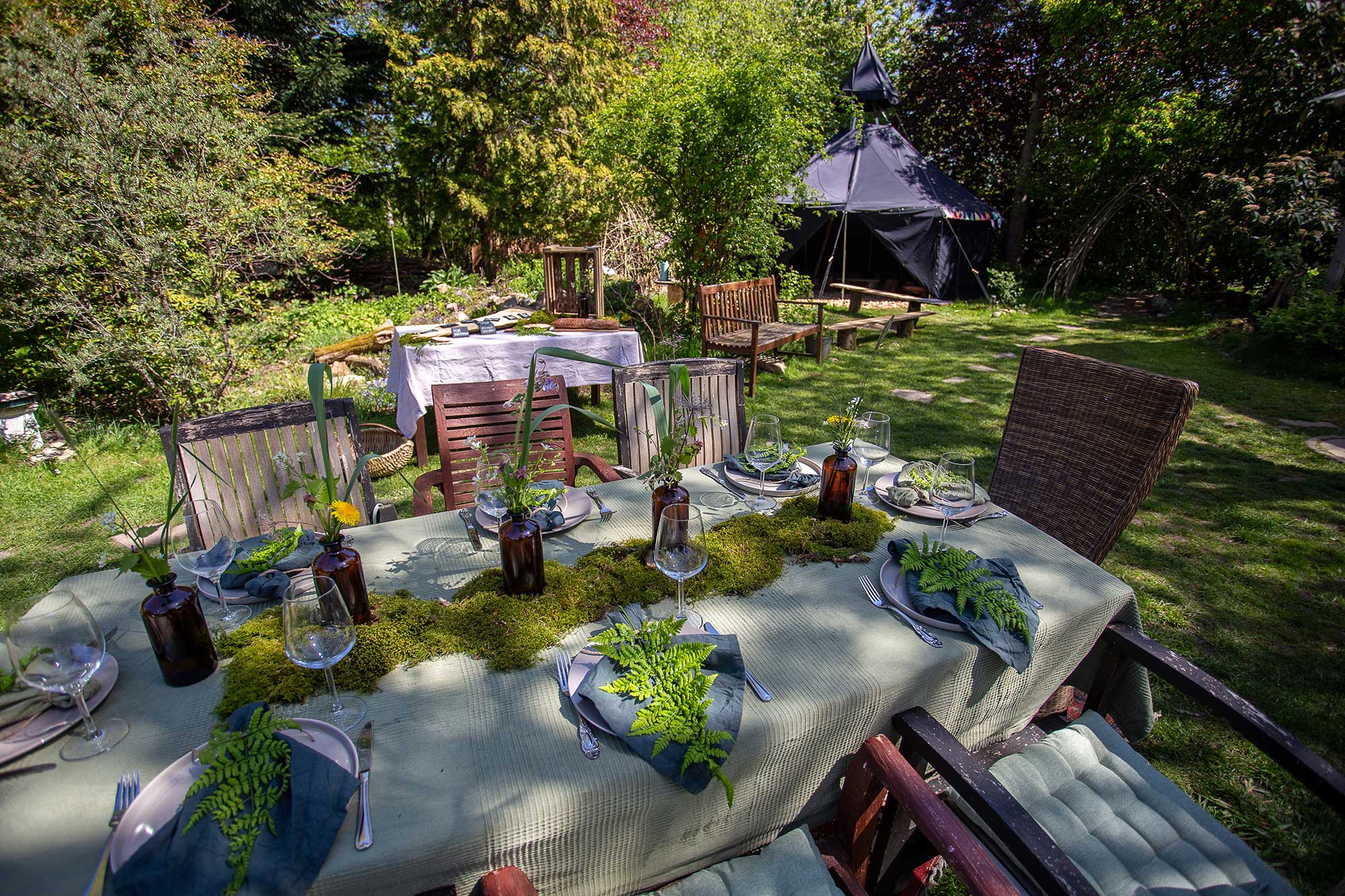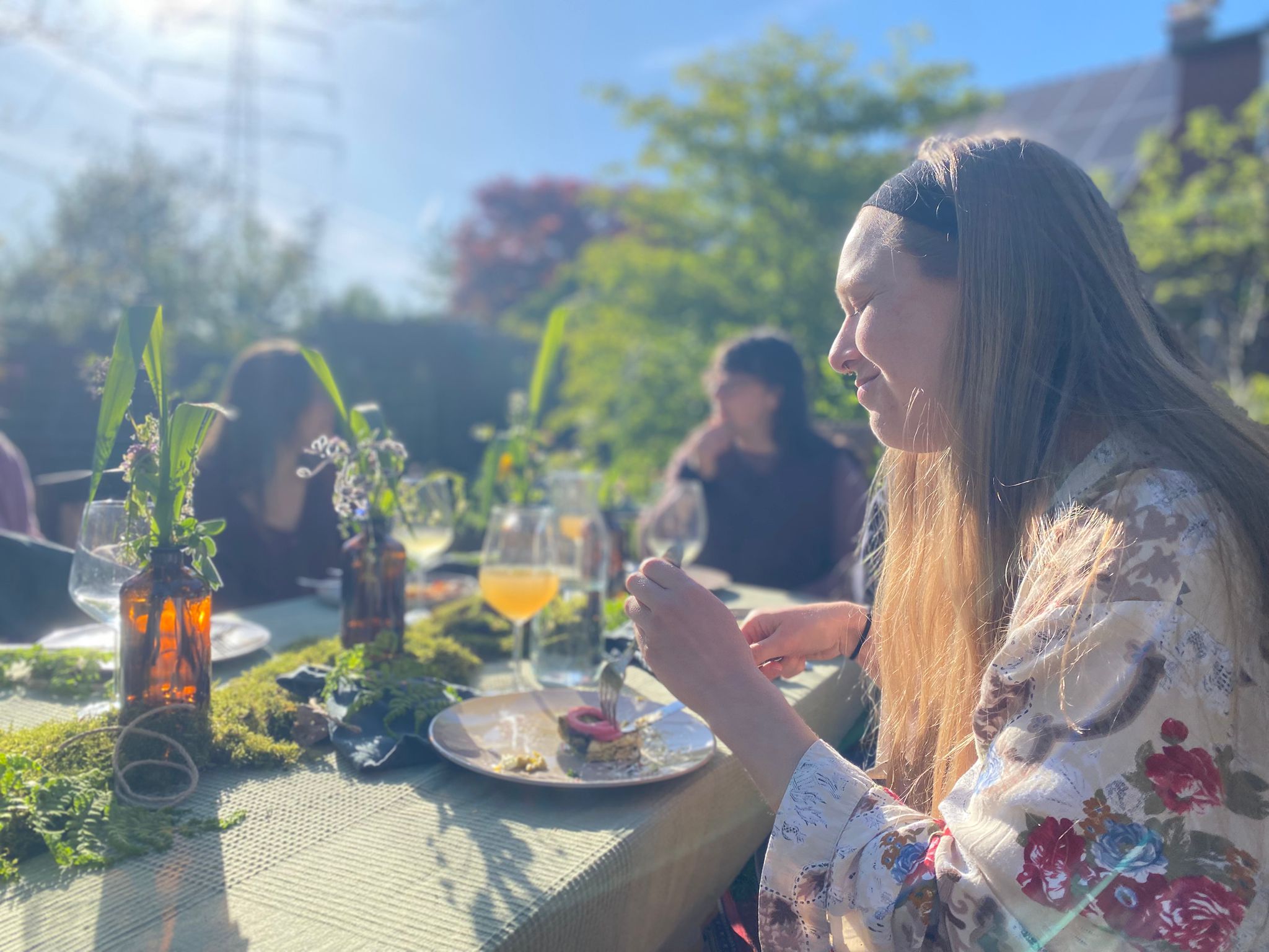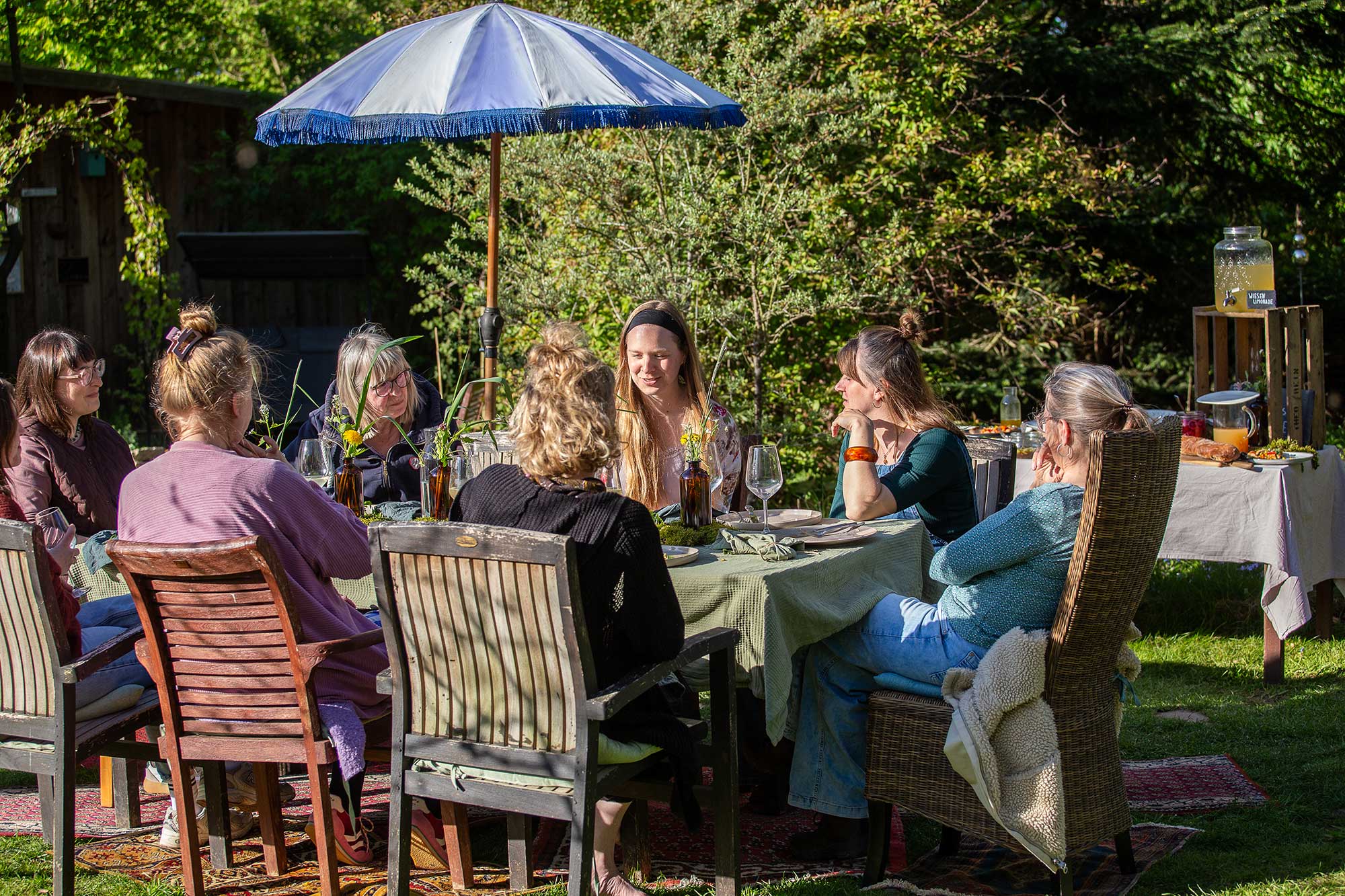 Das Wilde Schlemmen wurde gemeinsam von Jasmin und Jenny ins Leben gerufen, um ihrer Leidenschaft für Wildkräuter und allem, was in der Natur selbst gesammelt werden kann, sowie dessen Verarbeitung Rechnung zu tragen. Geplant sind mehrere Wilde Schlemmen-Termine im Jahr mit passenden saisonalen Gerichten. Ein Gericht wird dabei mit zuvor gemeinsam gesammelten Materialien vor Ort zubereitet, die anderen Gerichte werden zum einfachen Genießen von uns frisch vorbereitet und als Buffet präsentiert. Ihr bekommt mindestens ein 3‑Gänge-Menü (Vorspeise, Buffet als Hauptgang, Nachspeise) inklusive passende ausgewählte Getränke.